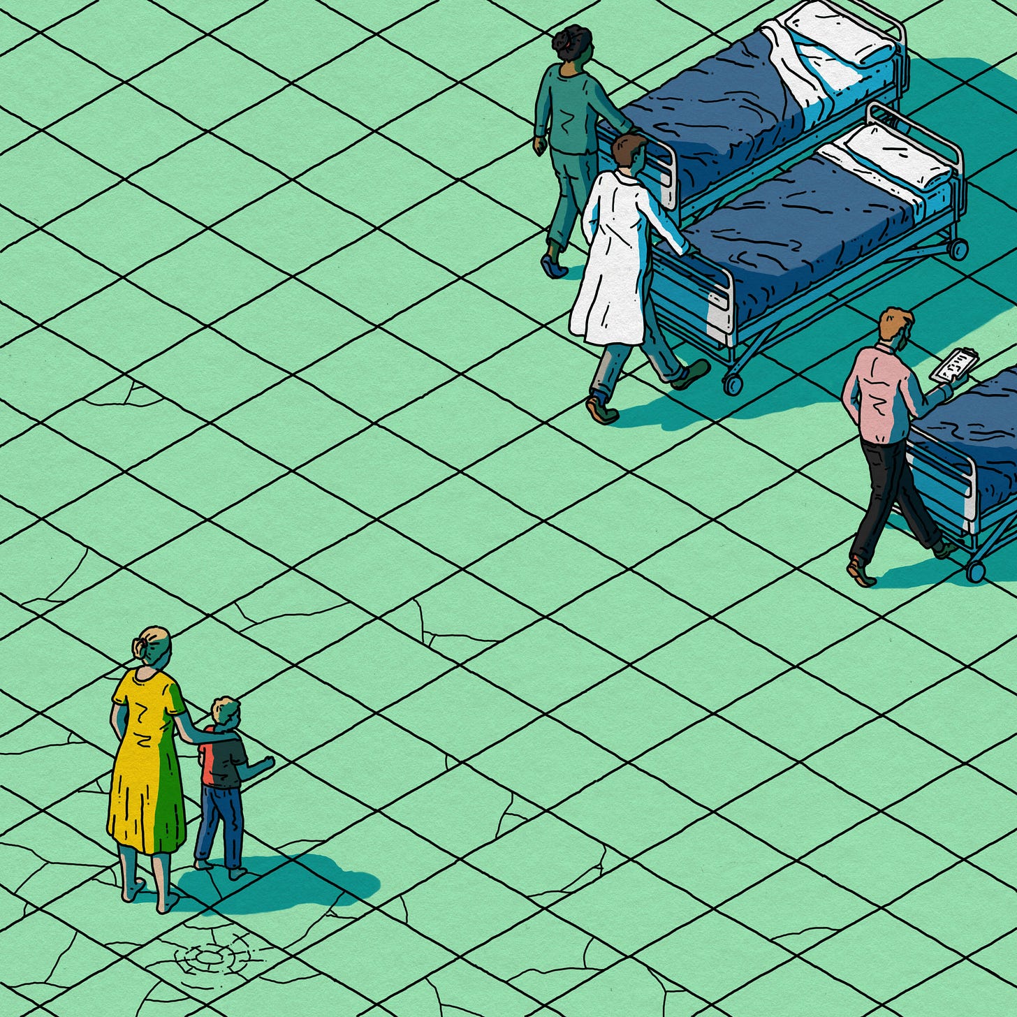I did this illustration for The New York Times. I hadn't worked with them before, and it still baffles me that these publishing institutions want to work with me, but I'm very flattered too. This one was about the collapse of Medicaid.